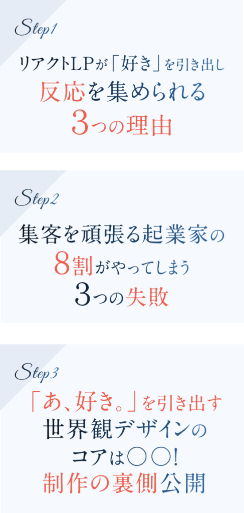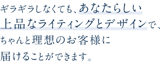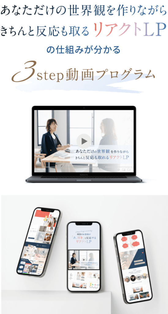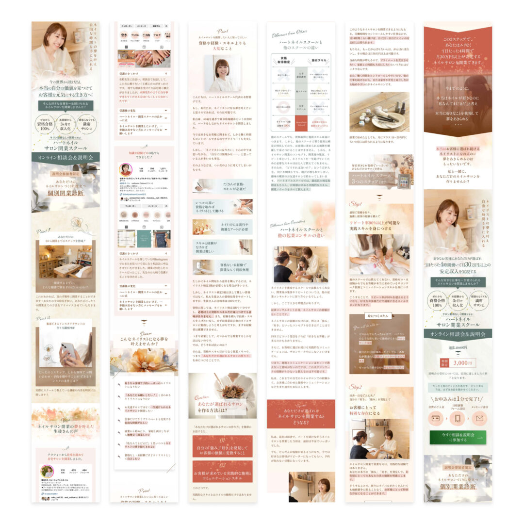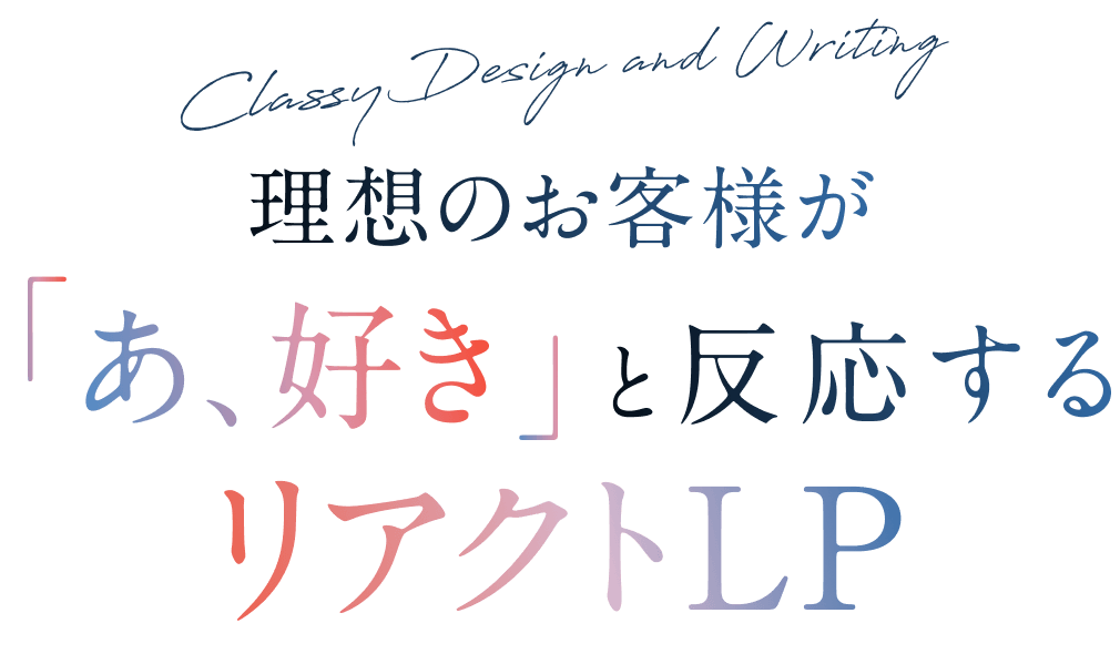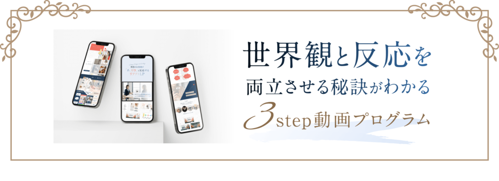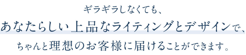 ご安心ください、反応が取れるLPに不可欠なコンテンツ・構成や、セールスライティングを基本ベースにお作りすることが大前提です。その上で、ライティング・デザインは、女性が「好き」「会いたい」と思えるような上品なテイストに仕上げていきます。