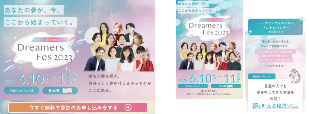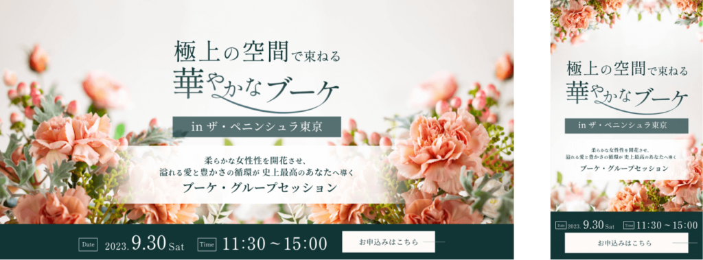 初開催となるセッションに込めた想いや、来て頂く方に感じて頂きたいイメージをお伝えした結果、十二分なデザインをご提案いただき、お陰様で1日足らずで満席となりました!!ホームページやチラシに加えて、今回のLPでも世界観を更に統一して打ち出せていることが嬉しいです。開催内容にぴったりのFVで、後から一層効果を実感しています。やりたいことが沢山あるけど、アウトプットが追いつかないという方におすすめです。