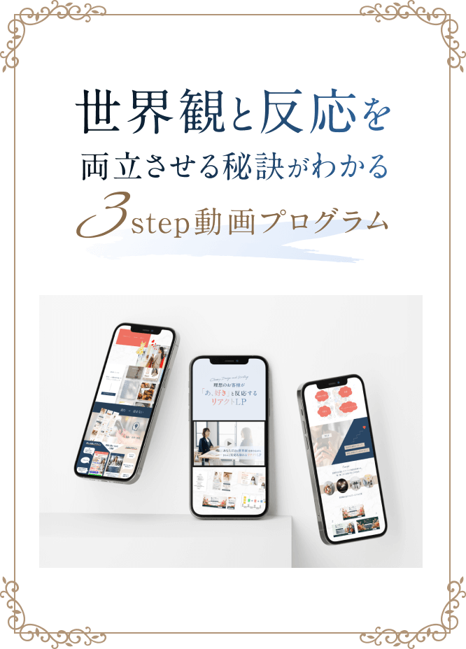 「好き」の感情を感じ取る右脳に、直接アプローチできるのが世界観にこだわったデザインです。再現性のある手法で、あなただけの世界観を、理想のお客様の”胸が高鳴る表現”に仕上げていきます。
